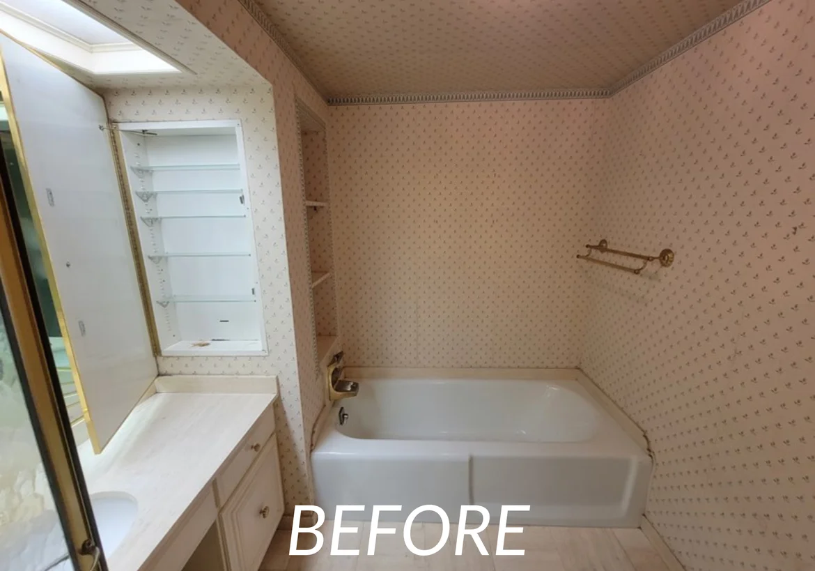 Bathroom overhaul: replaced outdated bathrooms with marble finishes, custom vanities, integrated shelving niches, and refined lighting.