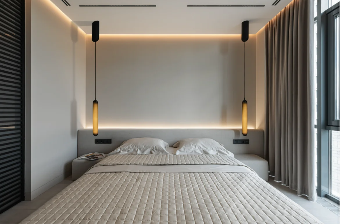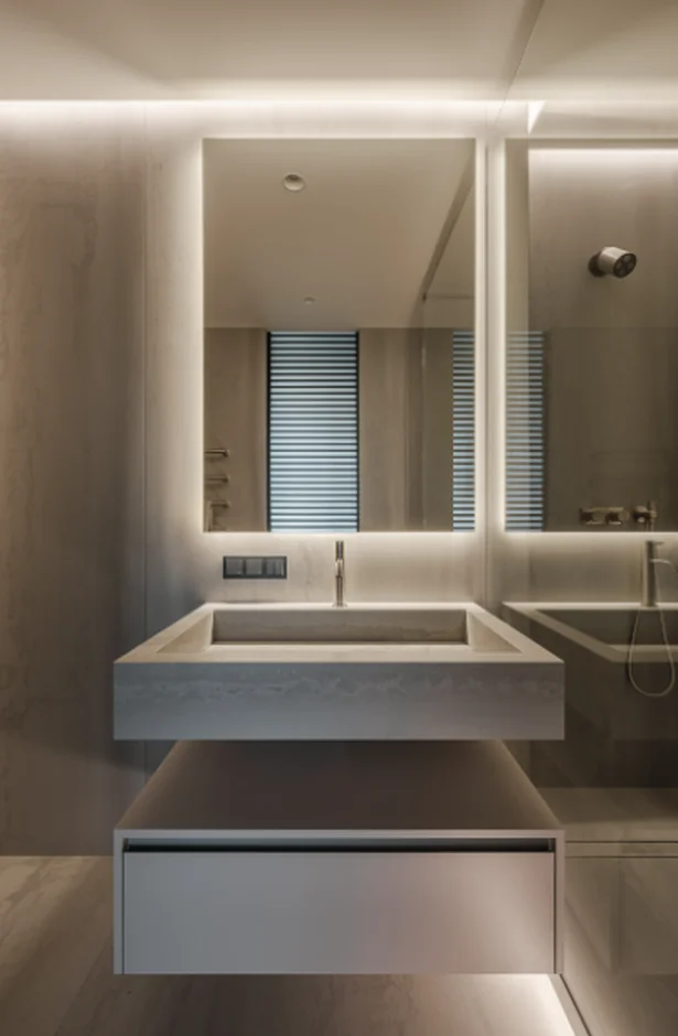 New suspended gypsum ceilings were installed across the apartment. Linear recesses and cutouts were formed to accommodate integrated lighting systems. All ceilings were precisely leveled and finished to support recessed, pendant, and concealed LED lighting installations.