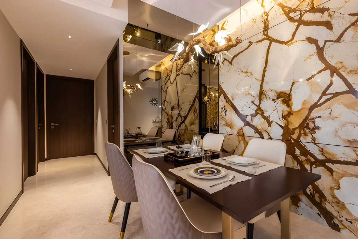Created a seamless dining area with mirrored surfaces to enhance depth and light