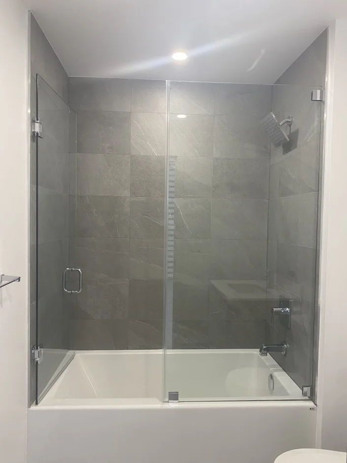 Glass tub/shower surround, upgraded fixtures, and a clean, minimalist layout.