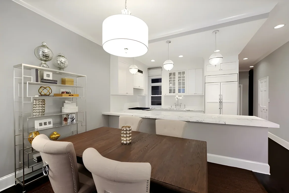 The remodeled apartment now flows seamlessly as a bright, luxurious haven with consistent high-end finishes and thoughtful design. The blend of classic white elements, rich marble, warm woods, and soft grays creates an inviting yet upscale atmosphere perfect for both daily living and entertaining — significantly enhancing comfort, functionality, and property value.