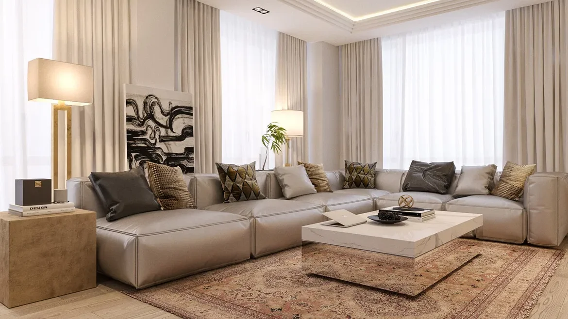Living area redesign: curated a spacious seating layout with modular sofas and accent chairs to enhance comfort and flow.