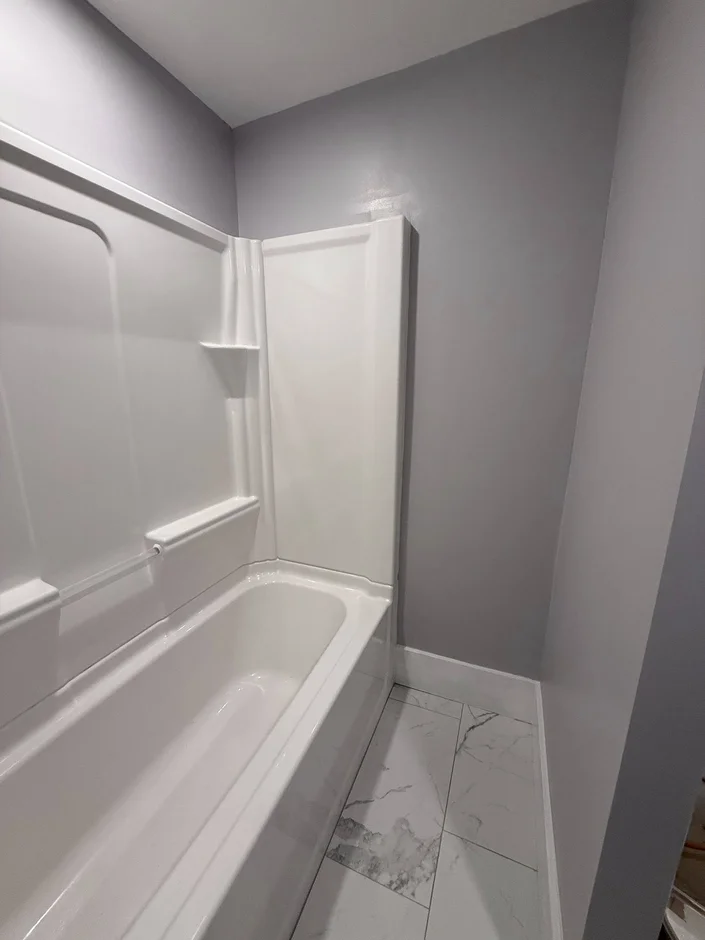 The finished floor delivers a balance of elegance, durability, and easy maintenance, perfectly suited for modern bathrooms and high-moisture spaces.