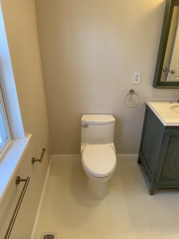 Walls were repaired and painted in a soft neutral tone that complements the tile and cabinetry. Final detailing completed the space with a clean, polished, and move-in-ready finish.