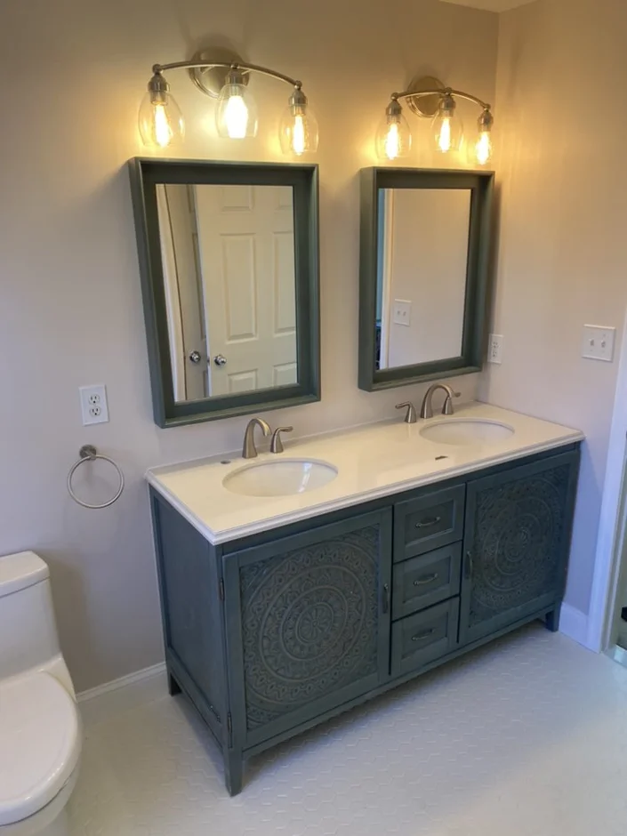 New wall-mounted lighting was installed above the mirror to improve visibility and enhance the overall ambiance. Electrical components were updated to support the new lighting layout safely and efficiently.