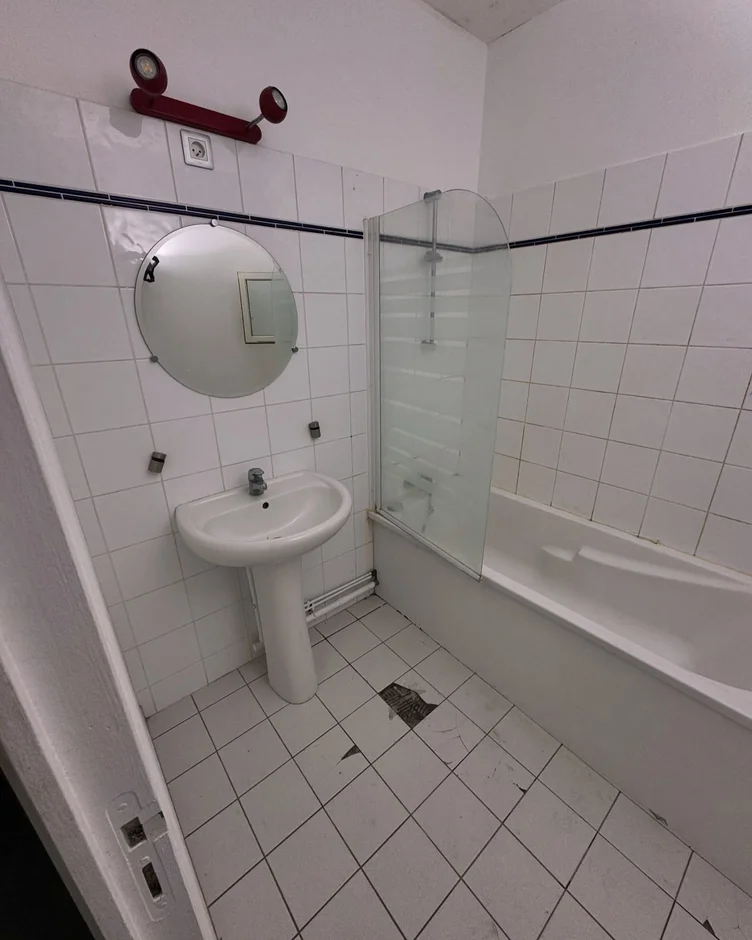 Replaced the tub surround and added a clear glass shower screen for a minimal, unobtrusive look. This enhances light distribution and keeps the room feeling open despite its compact footprint. -