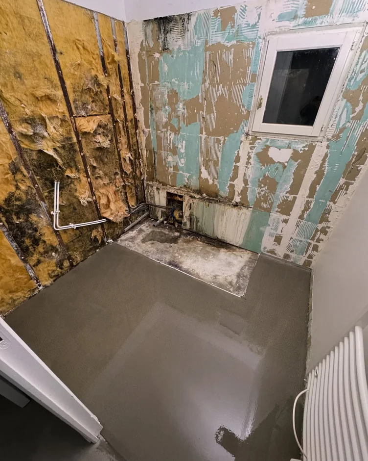 Installed a new wall-mounted vanity in natural wood tones to bring warmth and contrast to the pale tiling. The integrated basin keeps the visual lines clean and practical. -