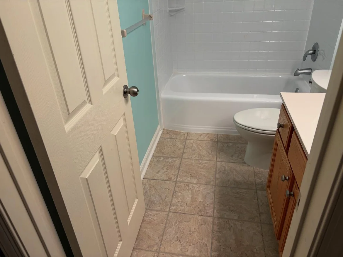 Upgraded the outdated tile to waterproof wood-look flooring, adding warmth and a modern touch. - Refreshed Bathtub Area
