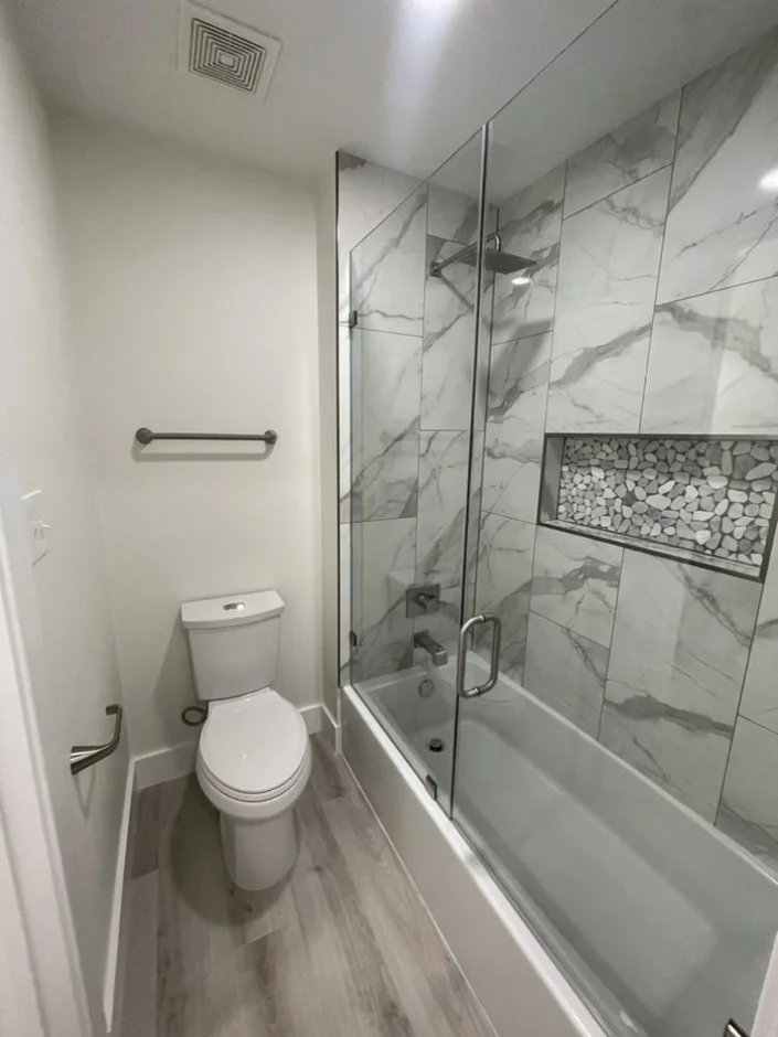 For this bathroom remodel, our team delivered a full transformation that turned an outdated space into a bright, modern, and highly functional bathroom. The renovation included complete demolition, new plumbing fixtures, upgraded lighting, and all-new finishes for a clean and elegant look.