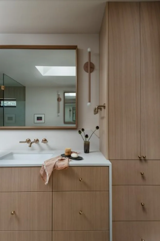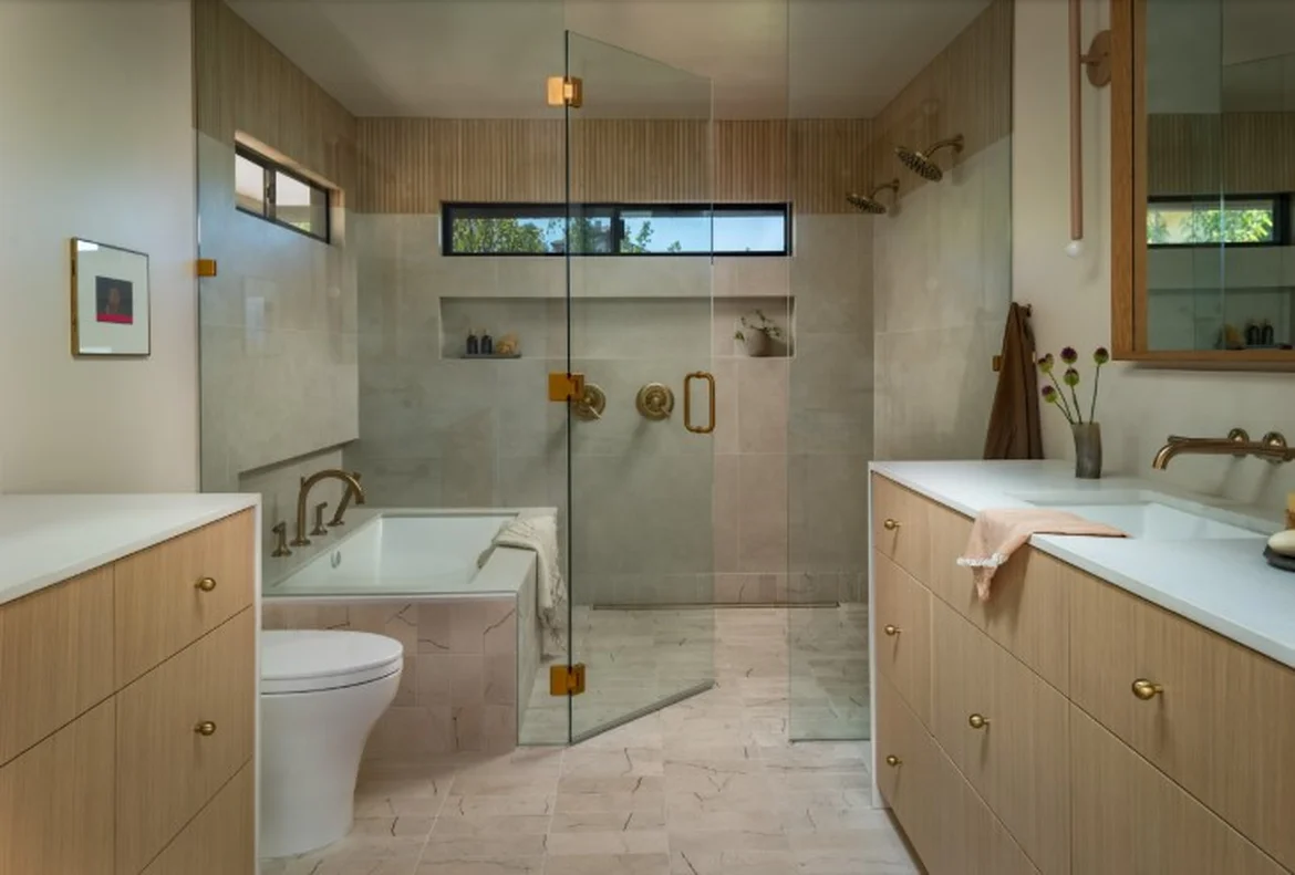This modern bathroom renovation beautifully demonstrates how simplicity, natural materials, and thoughtful details can create a space that is both luxurious and deeply calming. The balance of cool neutrals with warm wood and brass results in a timeless design that promotes relaxation and everyday joy.
