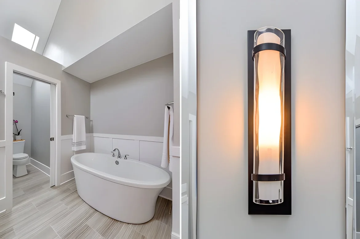 Added contemporary wall sconces for warm, balanced lighting at the vanity.