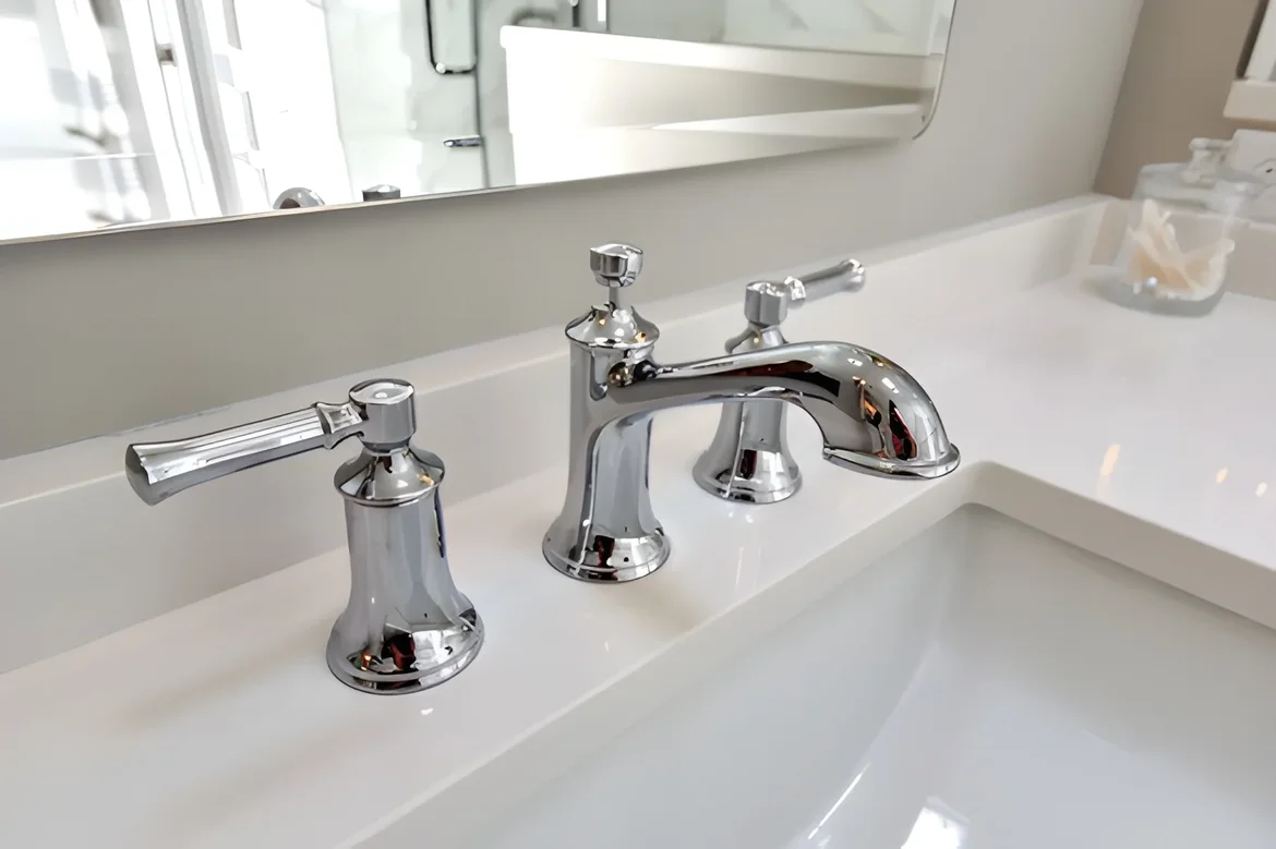 Added new plumbing fixtures and updated wall paneling for a clean, elegant backdrop.