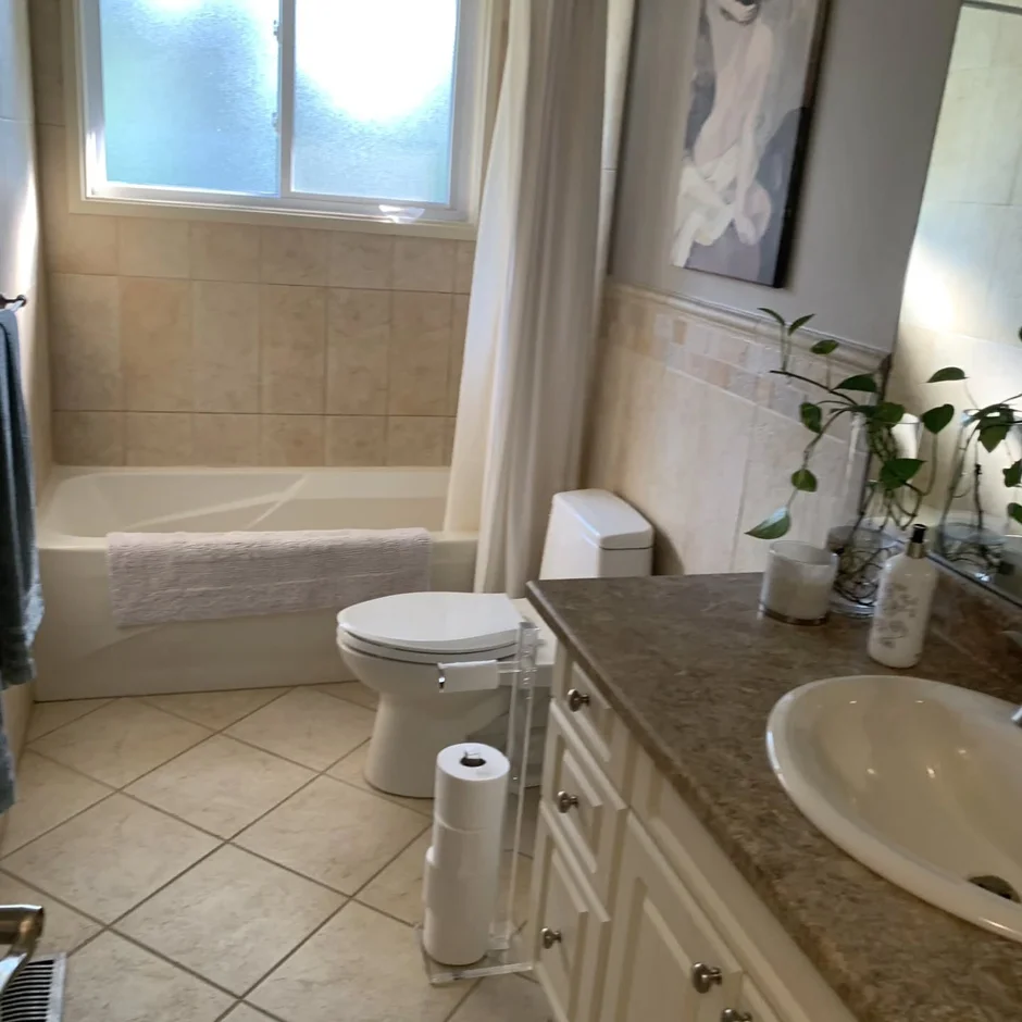 This bathroom renovation introduces a fresh, modern look with cool grey tones, sleek finishes, and a beautifully coordinated color palette. The new design feels calm, polished, and effortlessly contemporary.