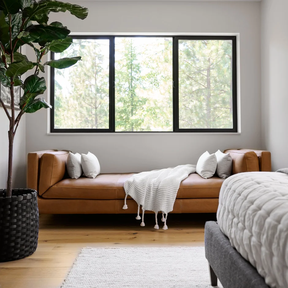 Old windows were fully removed and replaced with modern, energy-efficient units featuring sleek black frames. The new windows significantly improve natural light, insulation, and the overall aesthetic of the room.
