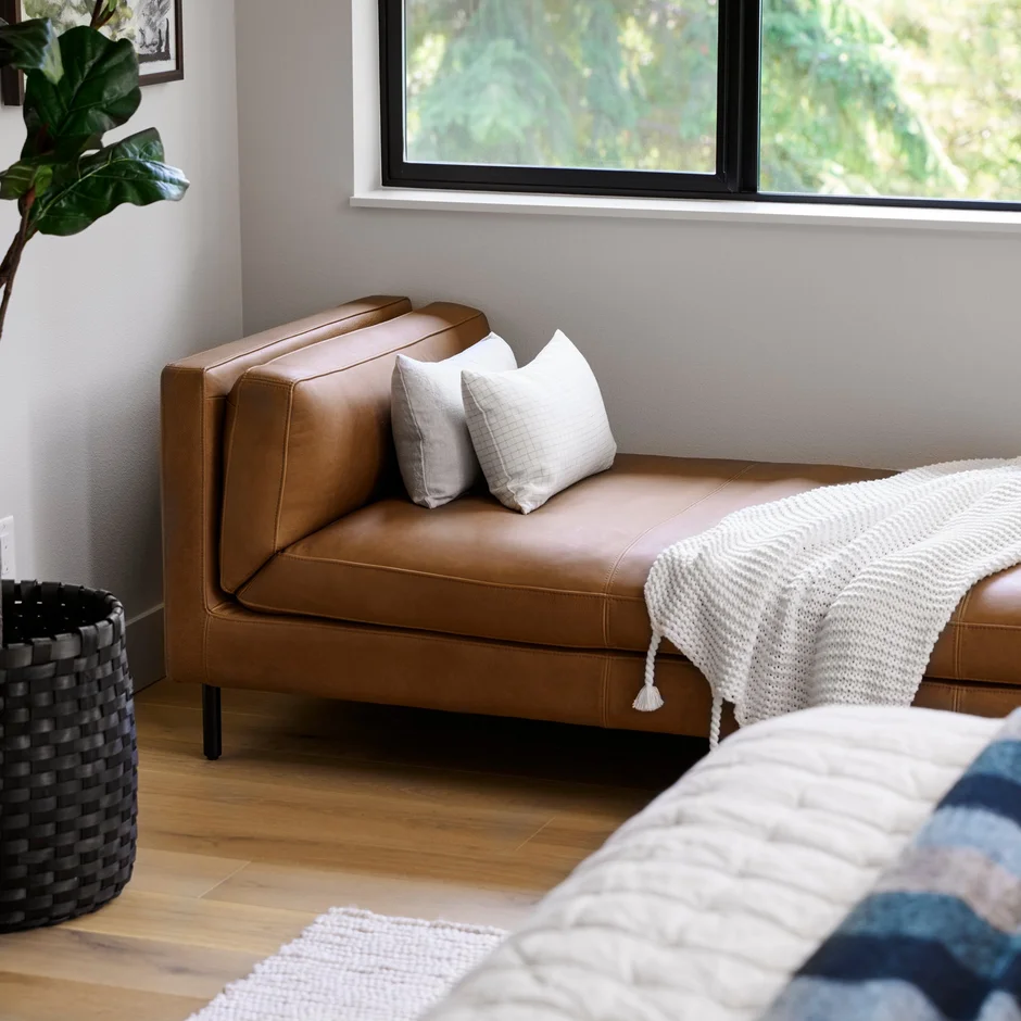 A new bed with an upholstered headboard, modern bedside tables, and a custom window bench were installed to improve comfort, storage, and everyday functionality.