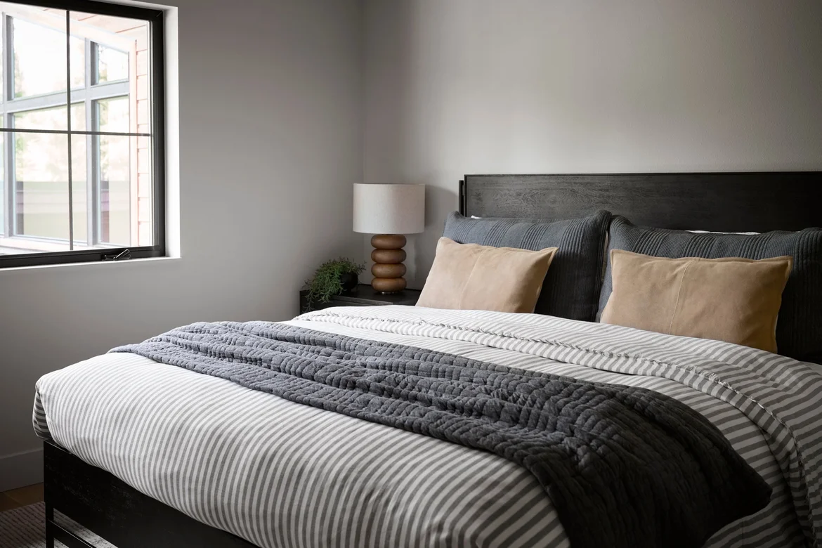 Electrical systems were updated where needed, including new outlets and switches. Modern lighting fixtures and table lamps were added to provide balanced ambient and task lighting throughout the bedroom.