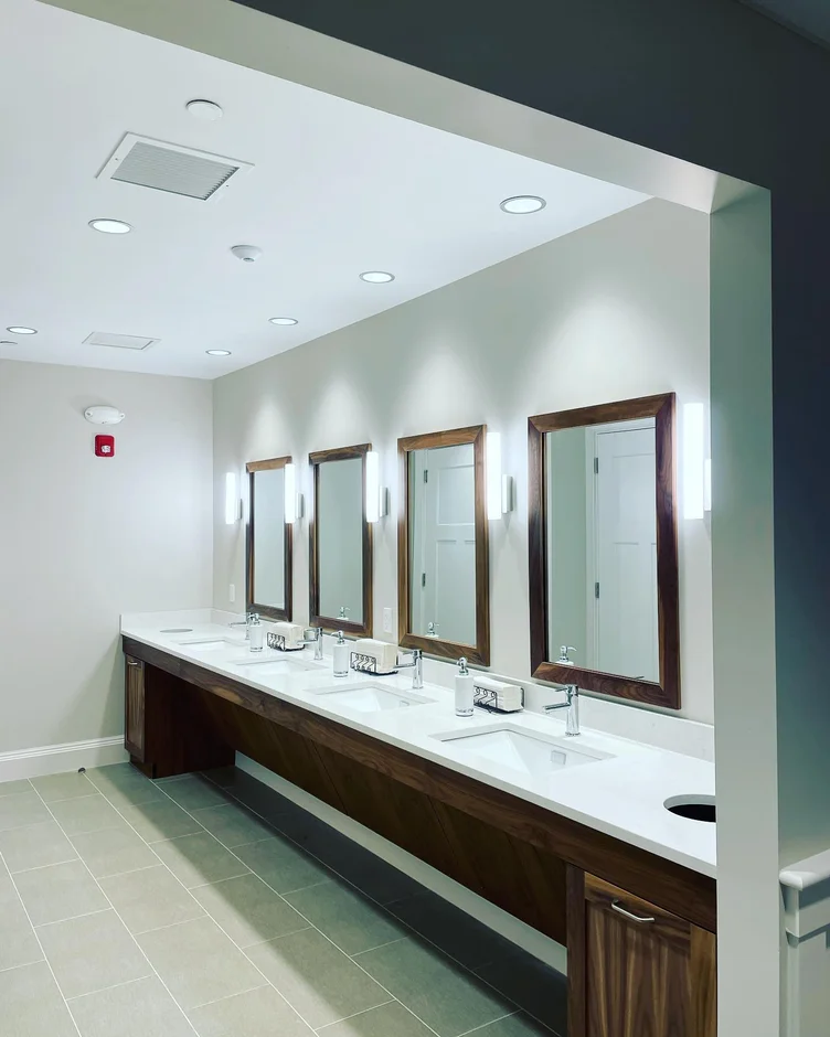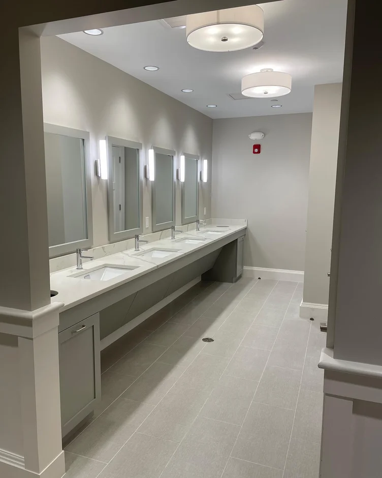 For this commercial restroom and locker room renovation, our team delivered a full interior transformation that upgraded both functionality and appearance. The outdated space was rebuilt with new finishes, modern lighting, custom millwork, and durable materials designed to withstand daily high-traffic use while maintaining a clean, contemporary aesthetic.