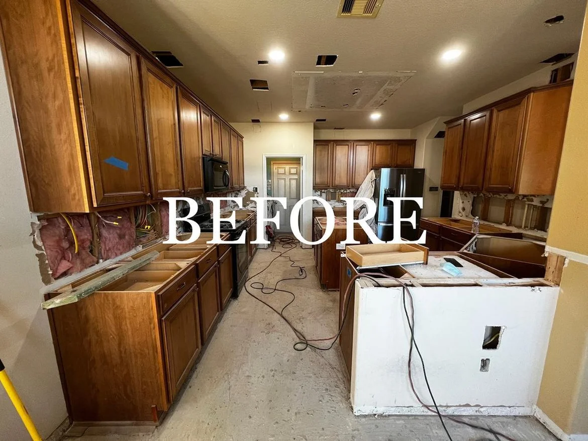 For this complete home remodel, our team delivered a full transformation that turned outdated spaces into a bright, modern, and highly functional home. The renovation included complete demolition, new cabinetry, upgraded flooring, plumbing, lighting, and all-new finishes for a clean, elegant look.