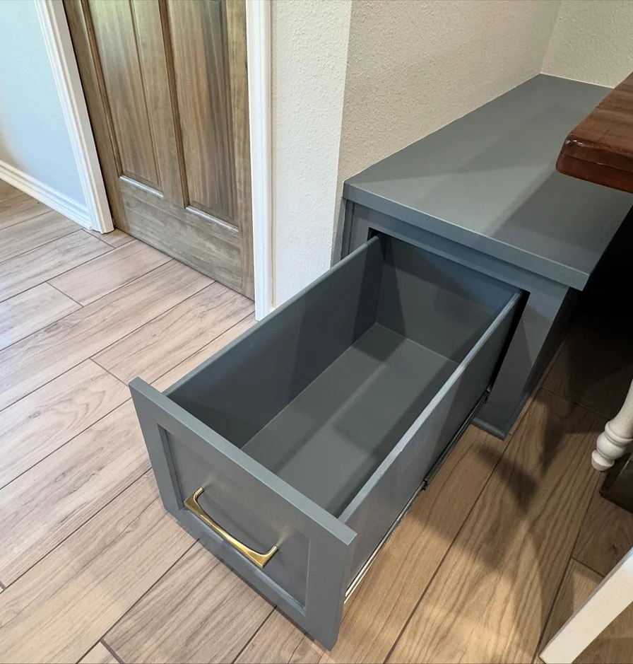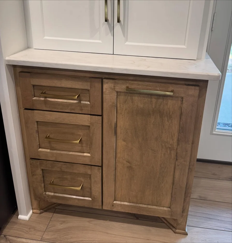 Completed the project with carefully selected brass hardware, trim work, and clean transitions that elevate the overall design and ensure the kitchen feels polished, cohesive, and ready for everyday use.