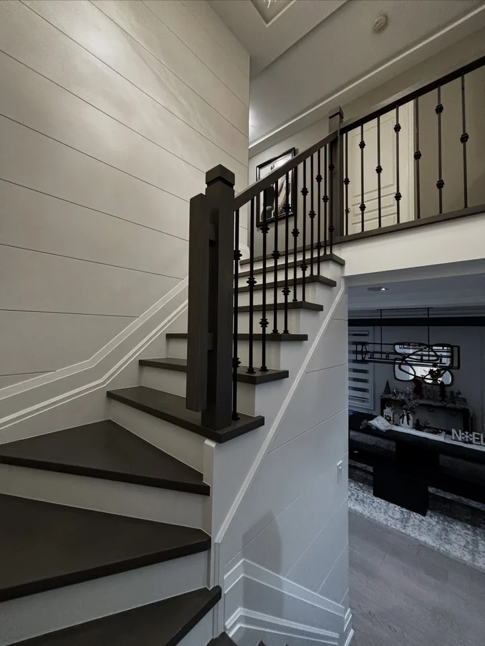 Completed the staircase in accordance with residential building codes, ensuring proper handrail height, spacing, and structural integrity.