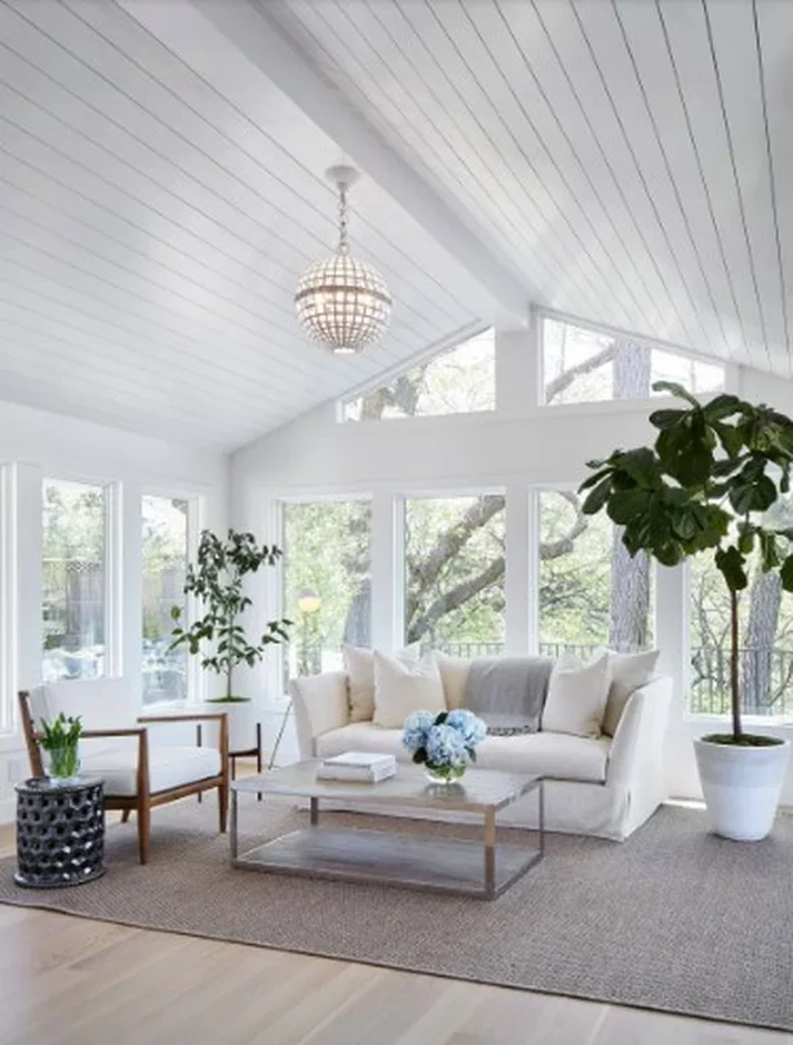 Incorporated biophilic elements like tall fiddle-leaf figs and fresh florals, alongside abstract artwork, patterned throws, and curated decor to add warmth, texture, and personality.