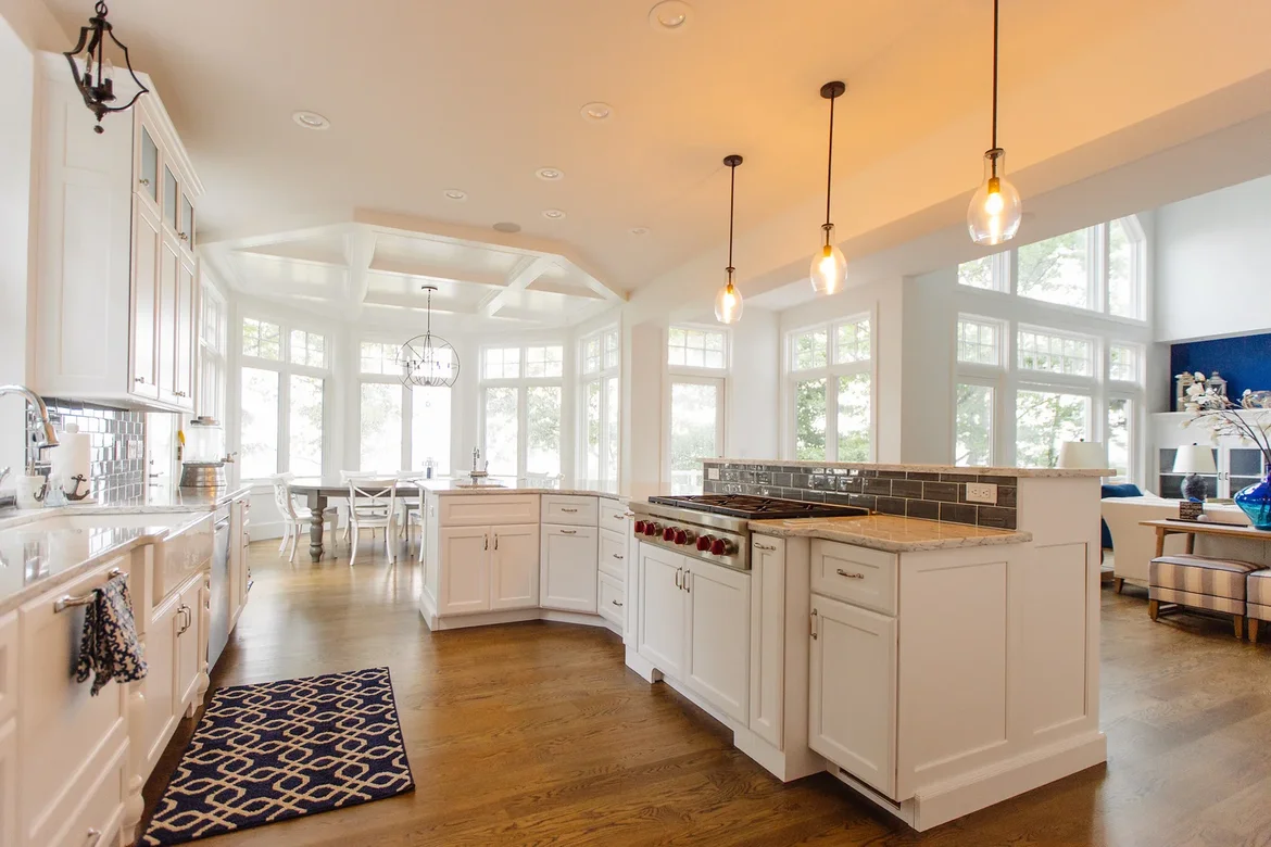Modernized the kitchen with a larger island, updated cabinetry, and new lighting to support both cooking and gathering.