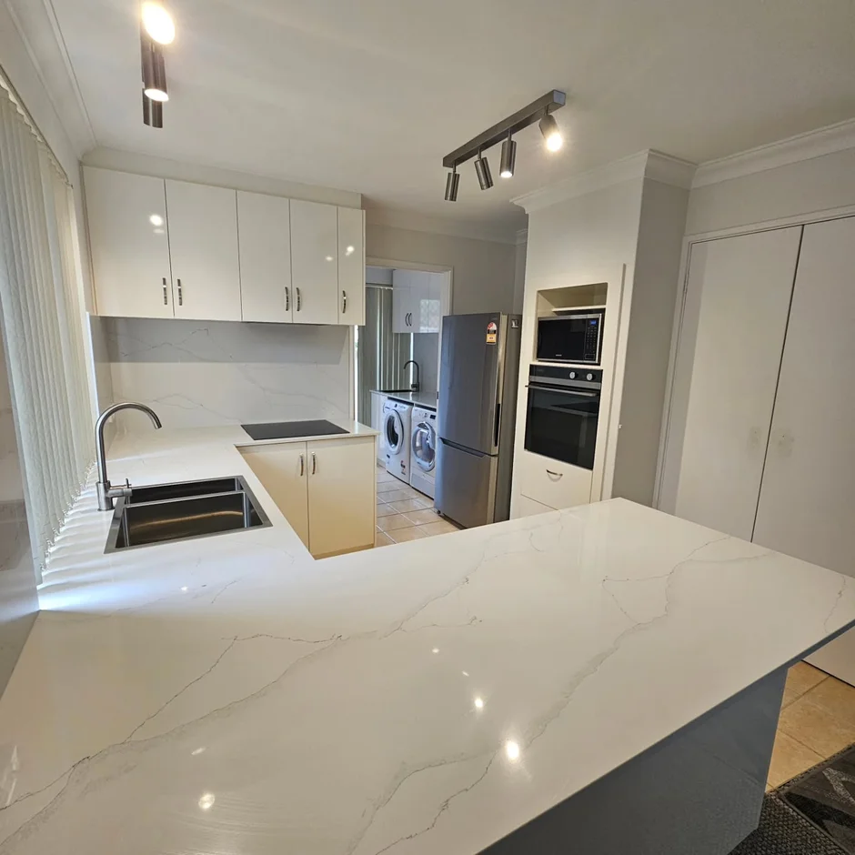 Installed new cabinetry, stone benchtops, and a reworked layout to improve workflow and storage. Added modern appliances, updated lighting, and a clean splashback for a bright, practical kitchen space. -