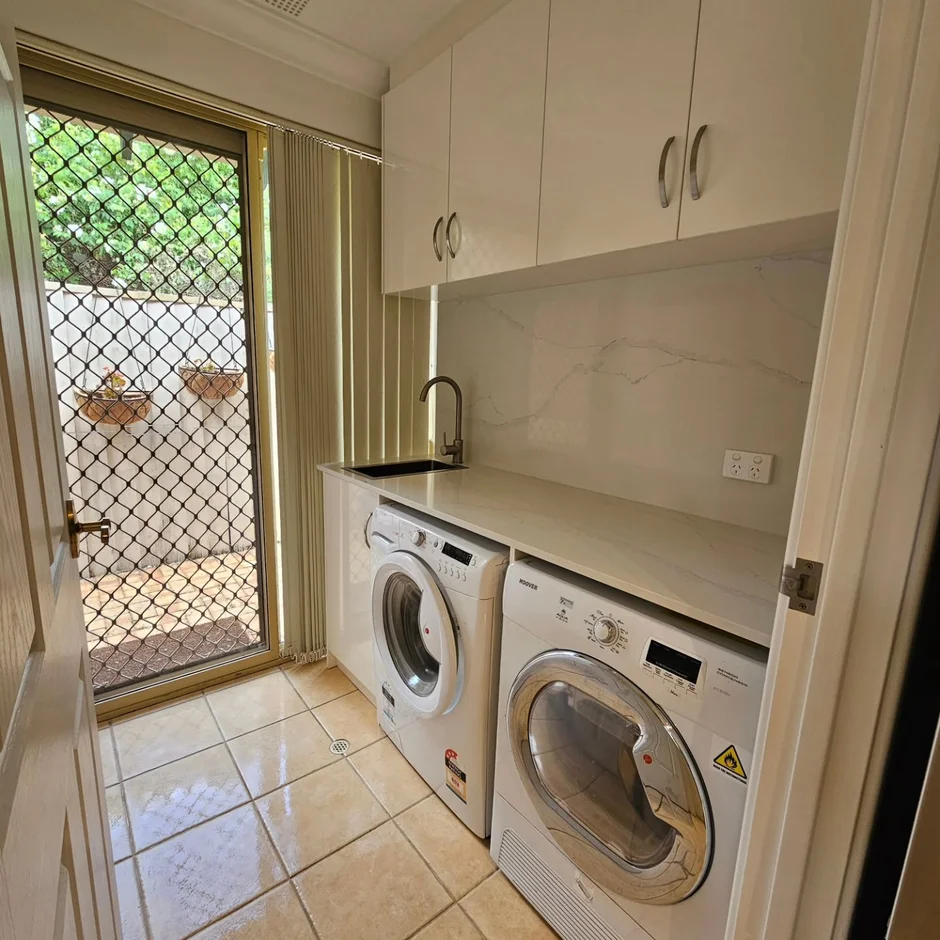 This renovation updates a standard residential kitchen, laundry, and bathroom to improve functionality, storage, and overall usability. The work focused on clean finishes, efficient layouts, and durable materials suited for everyday family use.