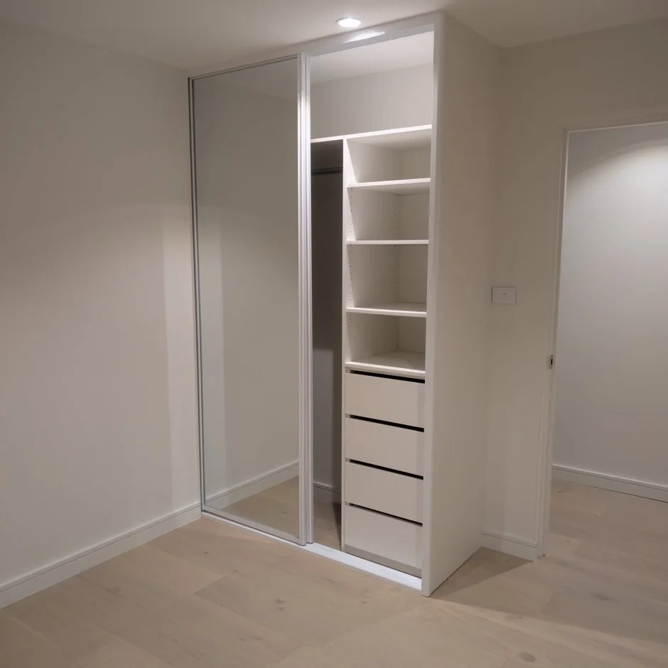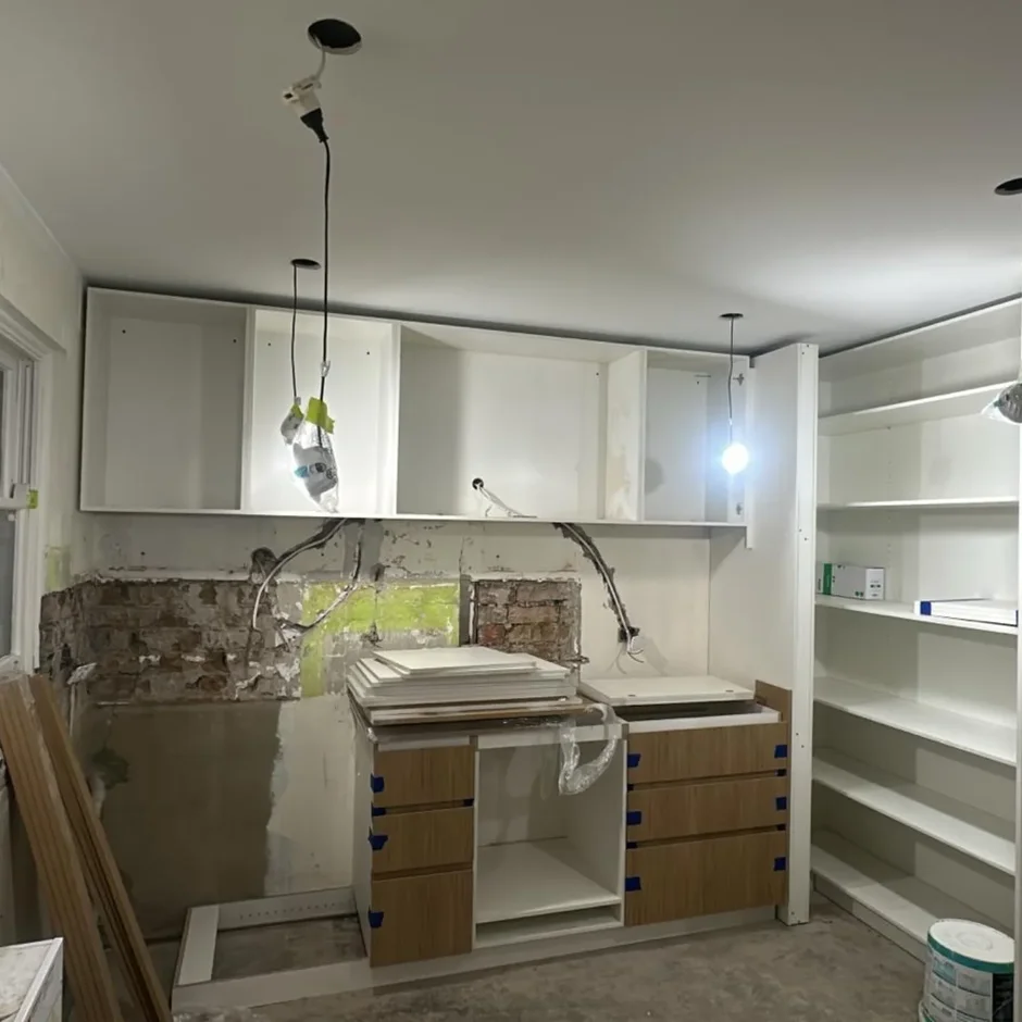 Installed integrated LED strip lighting beneath shelves to provide soft, even illumination for the workspace while enhancing depth and visual comfort. -