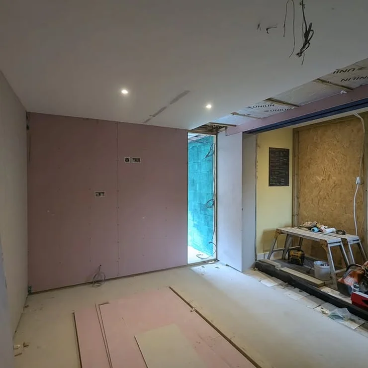 Finished walls and ceilings in soft neutral tones to enhance brightness and keep the focus on function, light, and material quality.
