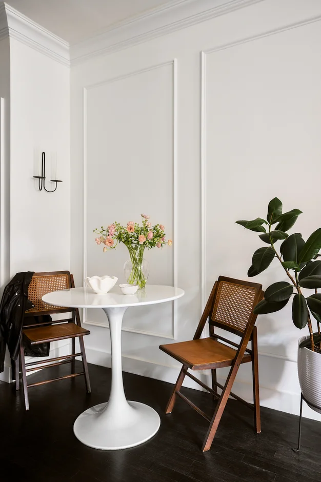 The small dining zone was redesigned to feel airy and refined: