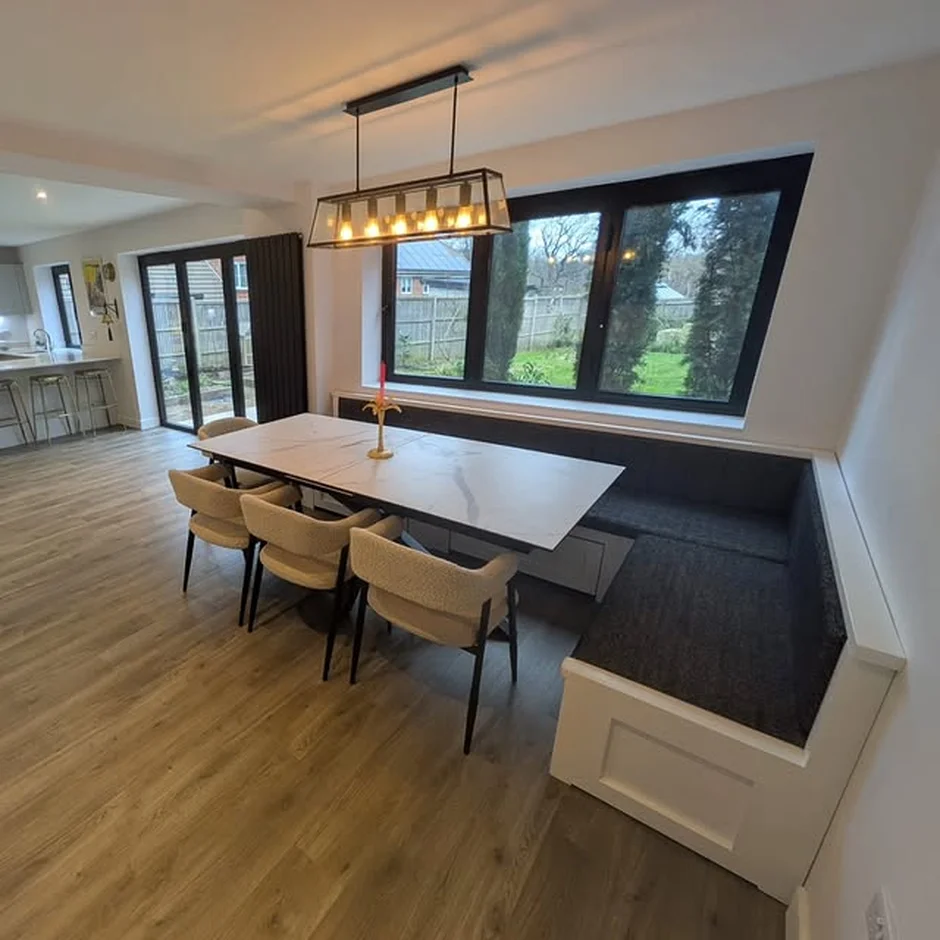 Created a bespoke dining bench with integrated storage beneath the window, maximizing seating while maintaining a clean and uncluttered look. -