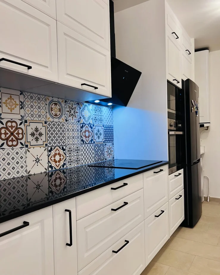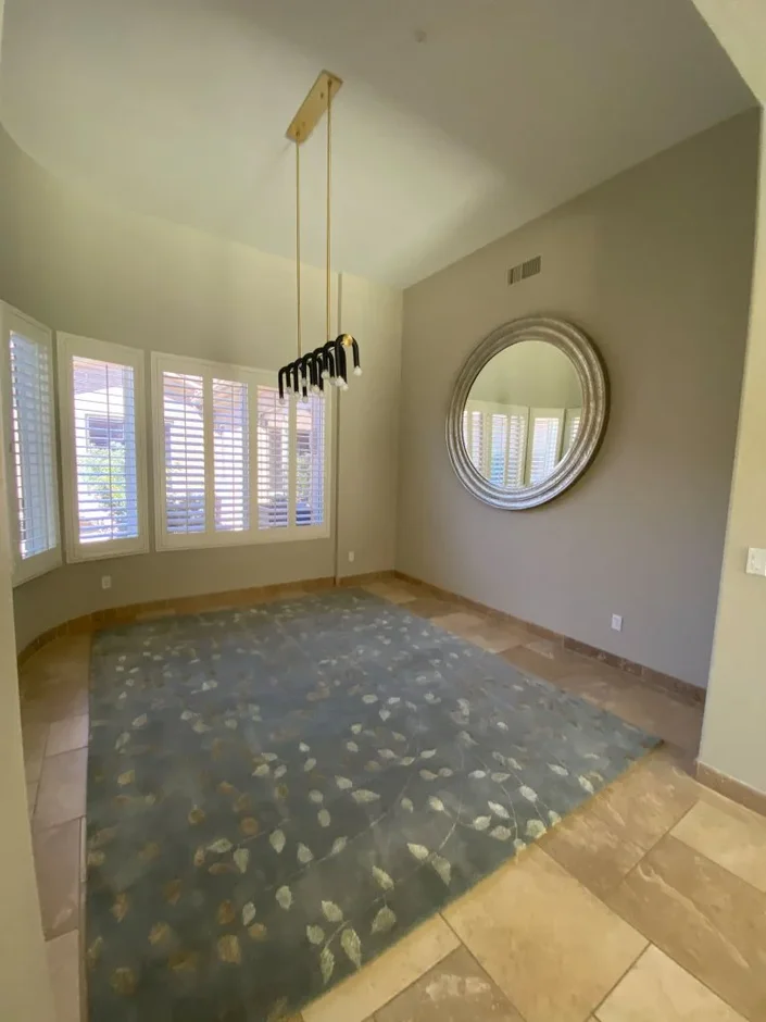 The entryway transitioned from a dark, dated space to a striking, welcoming moment. We installed a bold black chandelier, checkerboard marble flooring, a new glass-panel door, and a refined staircase finish. Sleek furniture and subtle décor give the entry a polished, modern appeal.