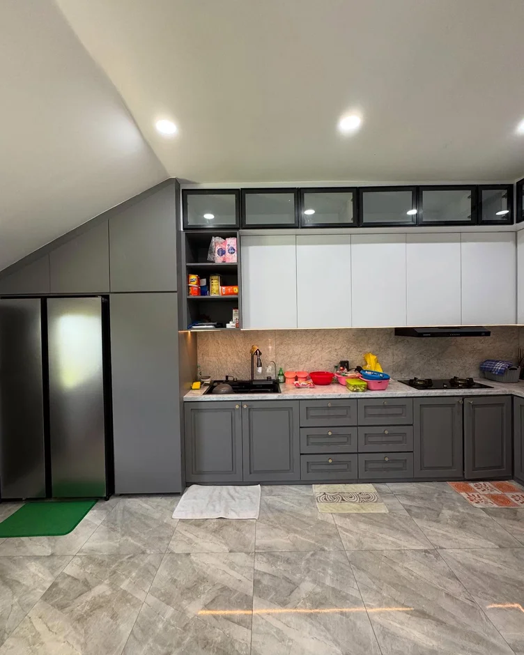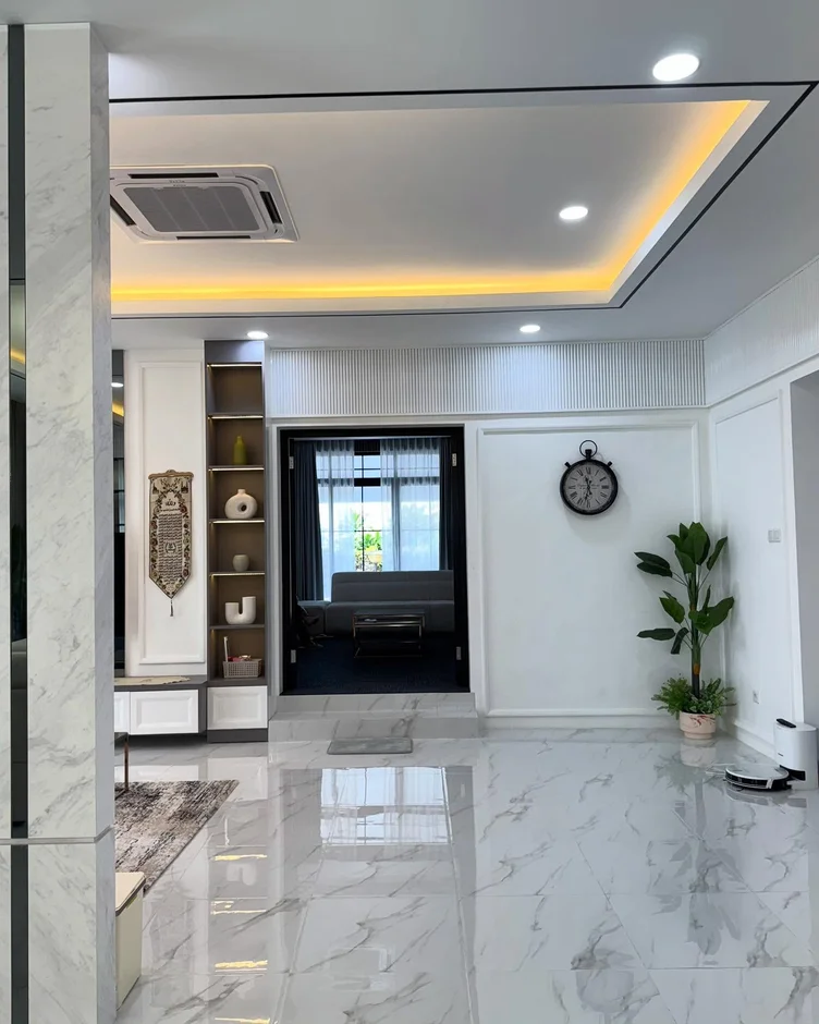 Updated all main areas with large-format marble-effect tiles and soft grey tones, creating a bright, seamless flow throughout the home. -
