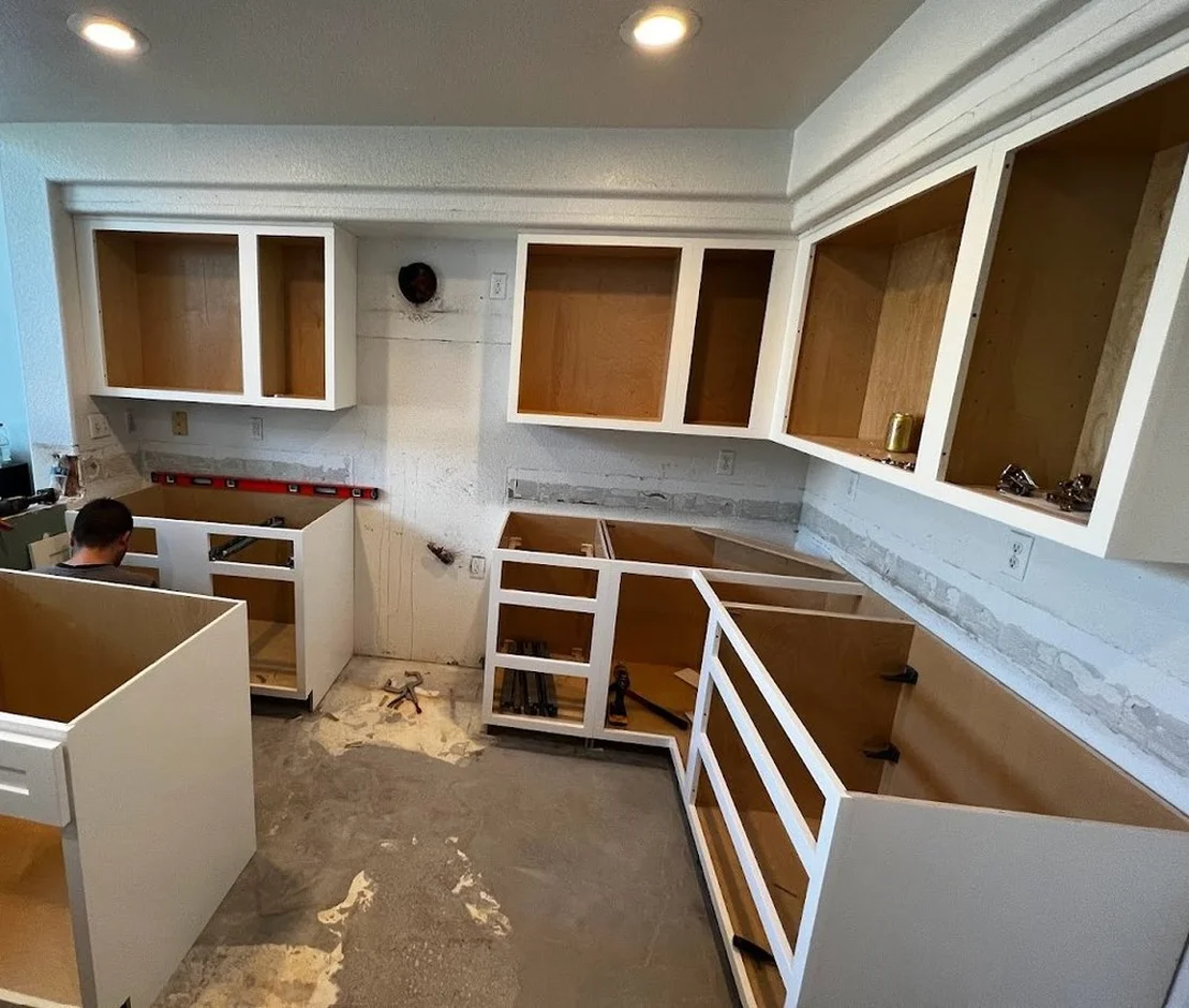 All existing kitchen cabinets, countertops, and wall finishes were completely removed. The space was cleared and properly prepared to accommodate the new layout, finishes, and installations.