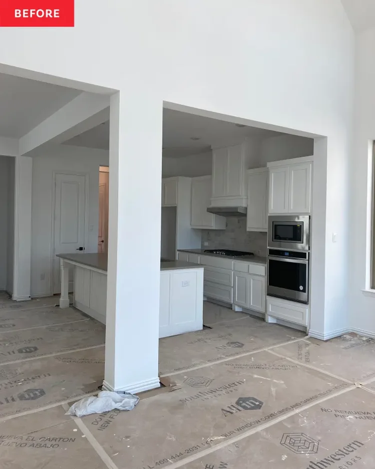 Added a decorative ceiling beam that visually anchors and warms the open kitchen layout.