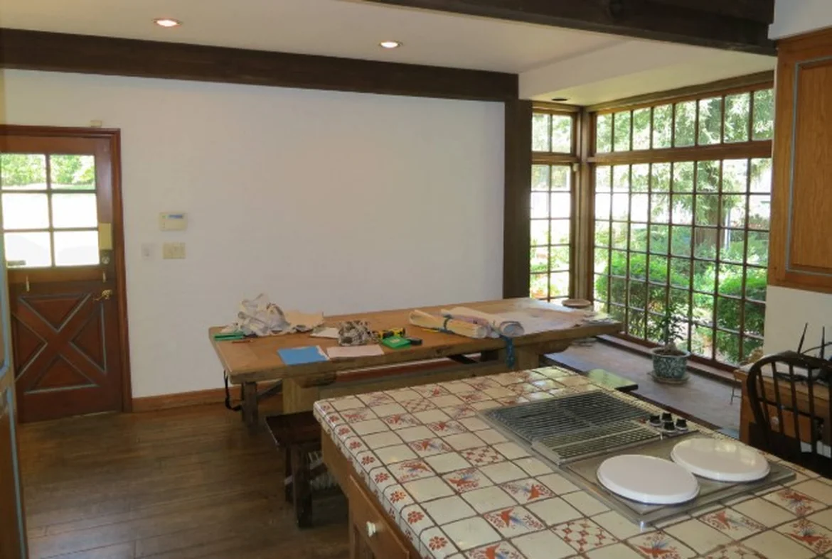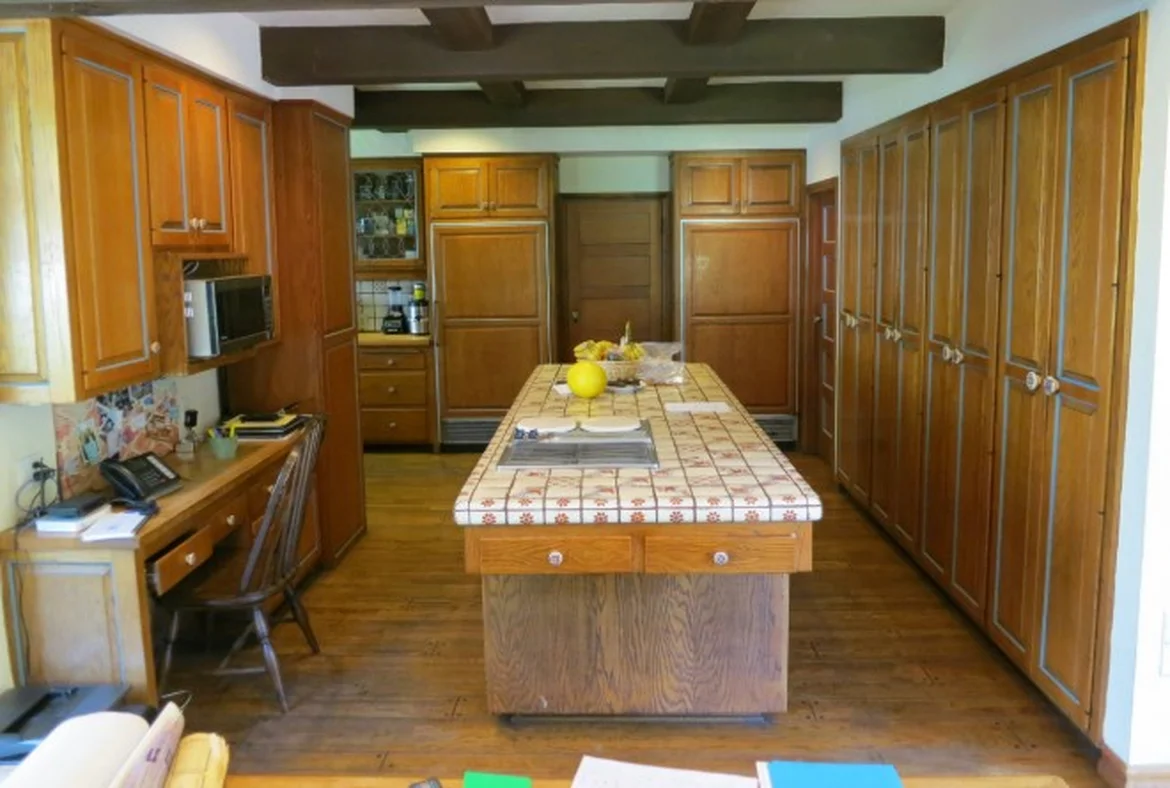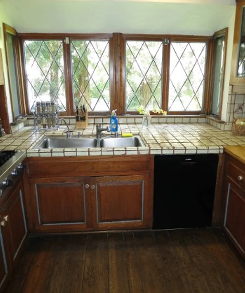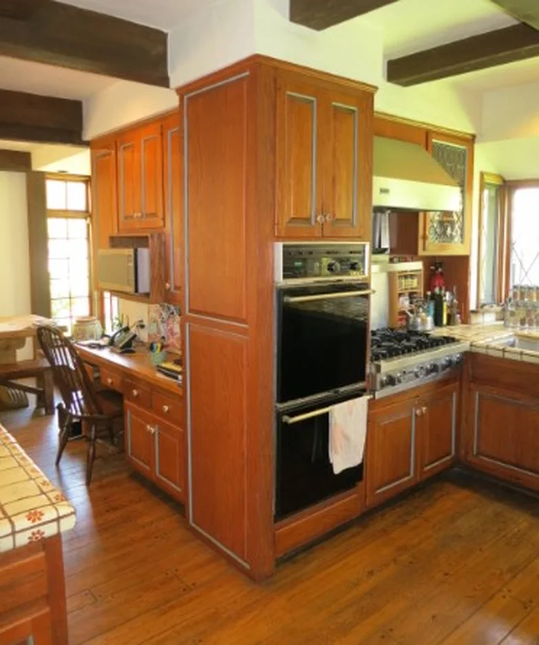 Dark, heavy wood cabinetry that made the space feel closed-in and dated