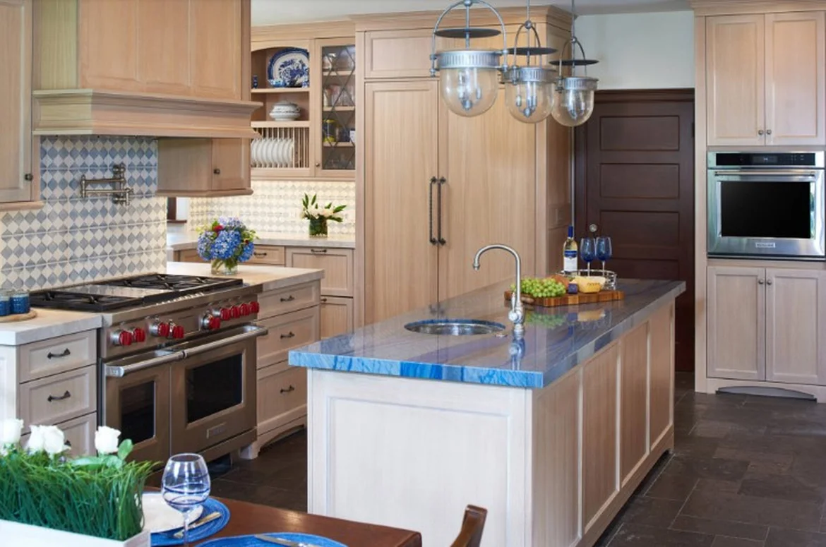 Installed a stunning blue marble island with integrated sink and ample prep space
