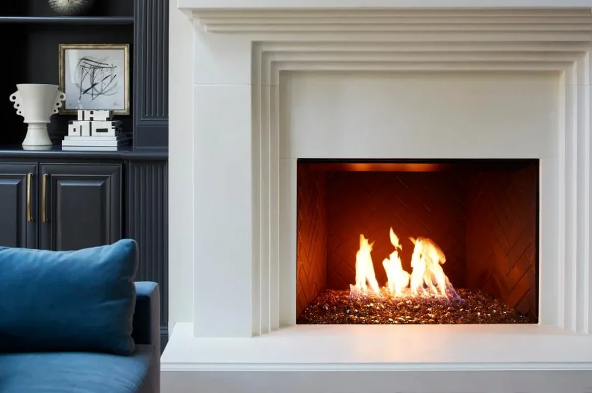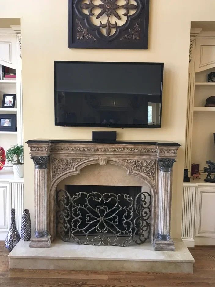 Replaced the heavy, traditional fireplace surround with a clean white contemporary design.
