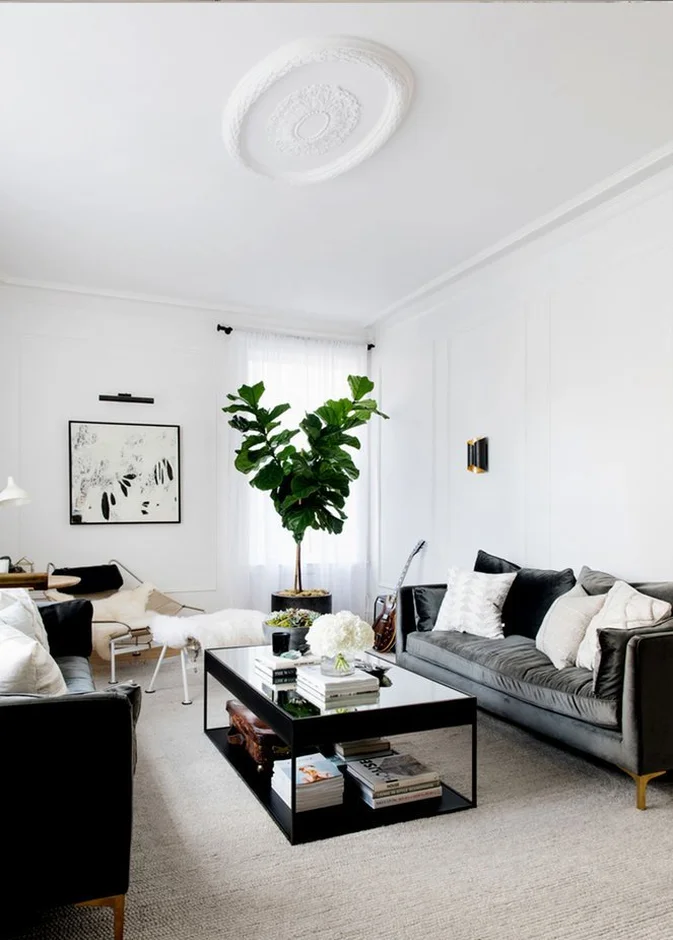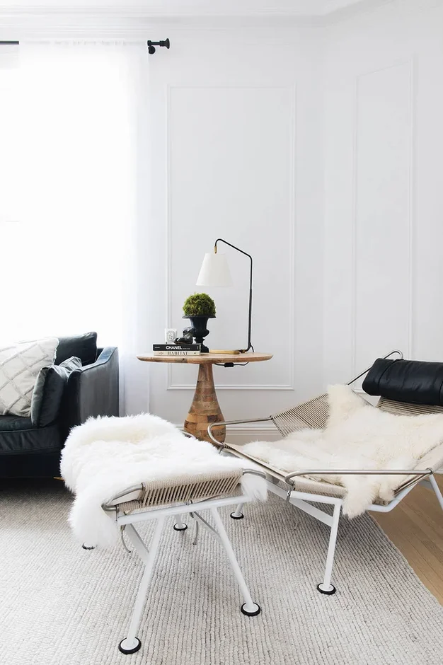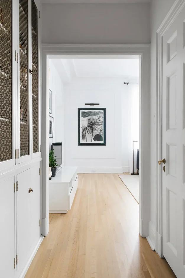 All walls were repaired, smoothed, and painted in a crisp white tone. Elegant wall moldings were installed to add architectural depth and create a clean, sophisticated backdrop for the redesigned living area.