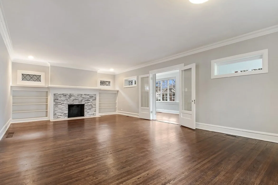 For this living room renovation, our team delivered a complete transformation that turned a cluttered, dim space into an open, bright, and modern room. The project included refinishing the walls and ceilings, replacing the flooring, updating the fireplace, and enhancing the architectural elements to create a clean and contemporary aesthetic.