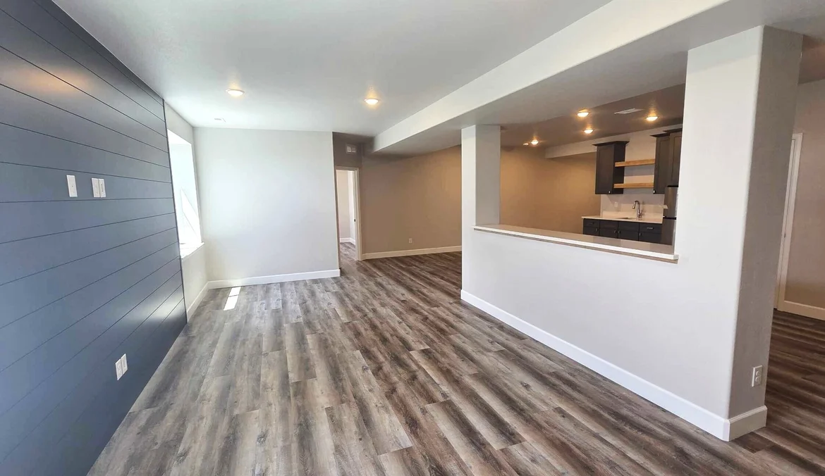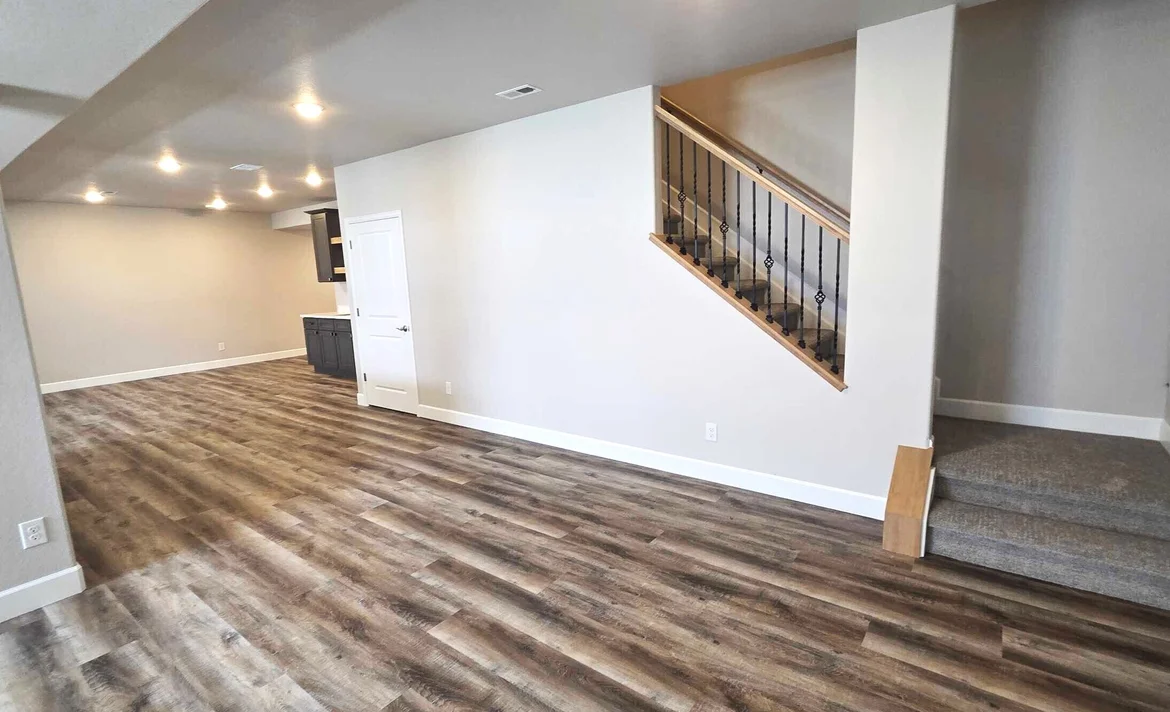 The existing subfloor was prepared and leveled as needed, followed by installation of luxury vinyl plank flooring throughout the basement. New baseboards were installed to complete the flooring system and provide clean wall transitions.