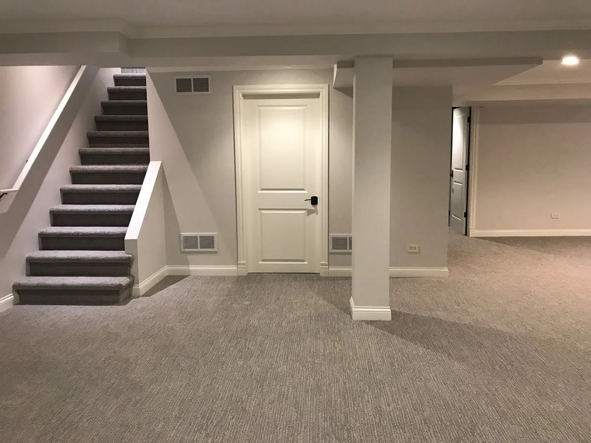 The staircase leading to the basement received new carpet installation, along with fresh paint on the walls and railing features. This creates a smooth and visually appealing transition between floors.