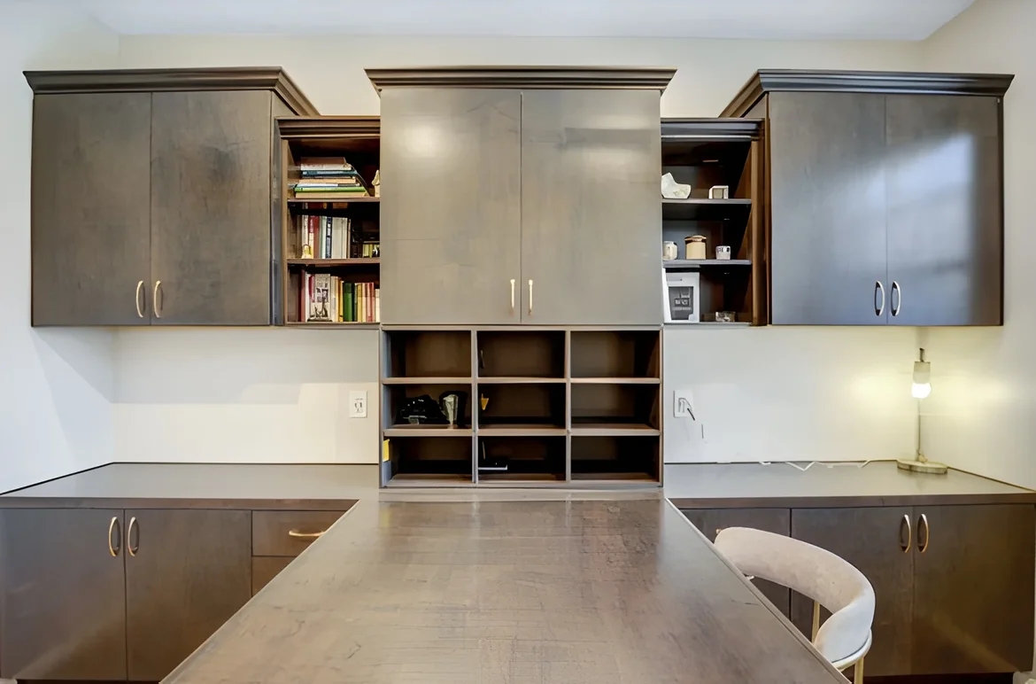 The remodeled office is now a polished, organized, and highly functional workspace. Custom cabinetry, thoughtful layout planning, and balanced finishes create a professional yet welcoming environment ideal for productivity, focus, and everyday work from home.