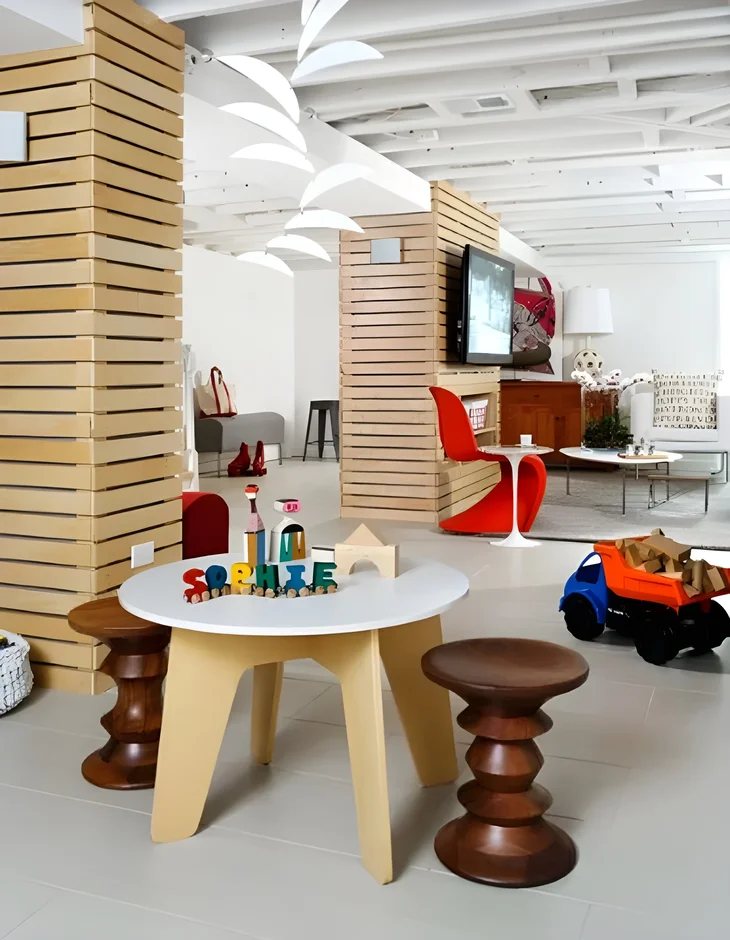 Created multifunctional areas: a cozy seating/lounge zone, kids' play area, compact home office nook, and full entertainment setup. -