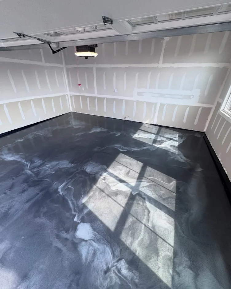 The final result is a seamless, high-performance metallic epoxy floor that combines durability, moisture resistance, and striking visual appeal—ideal for garages, basements, and utility spaces requiring both strength and modern design.