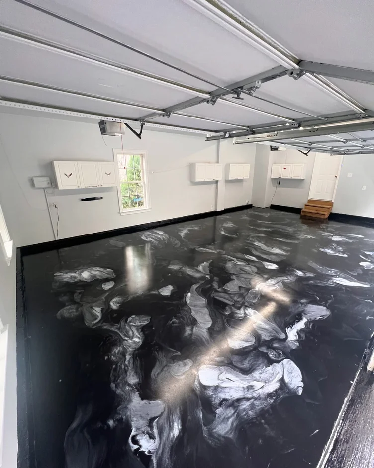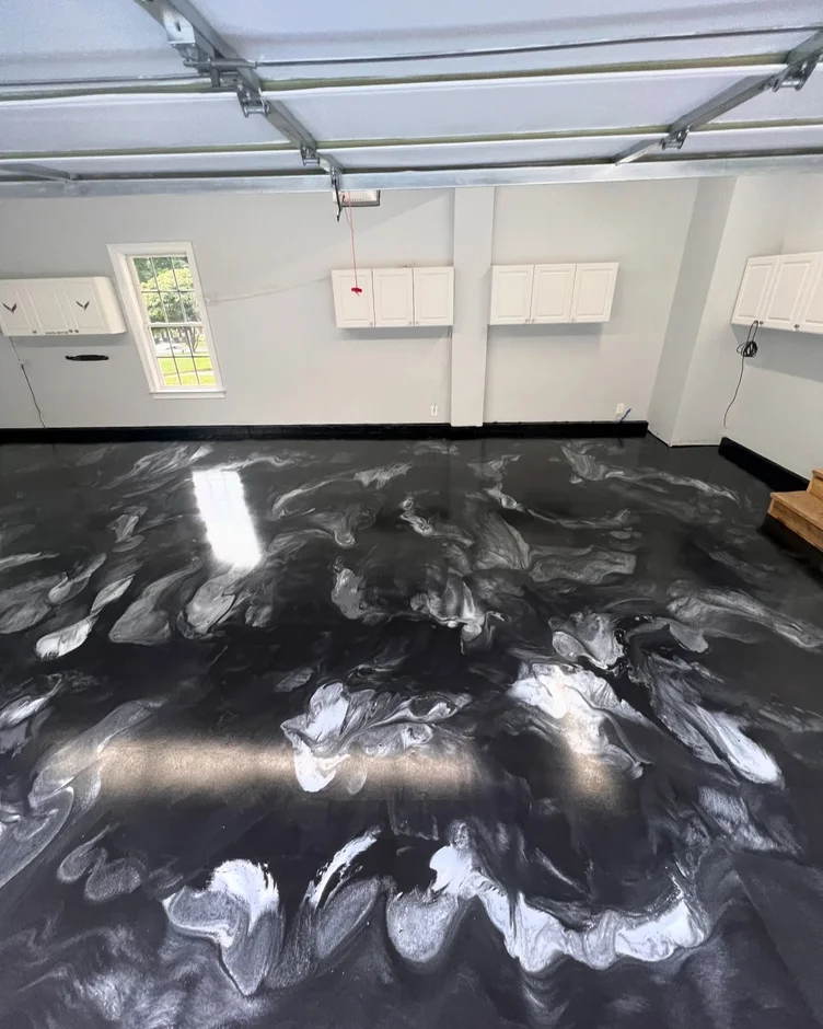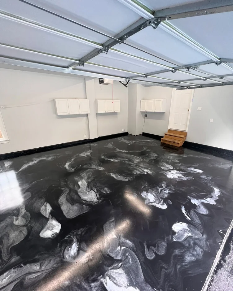 This project transforms a standard garage into a durable, visually striking space by installing a seamless metallic epoxy floor. The design combines industrial strength with a high-end marble effect, creating a surface that is both functional for daily use and visually refined.