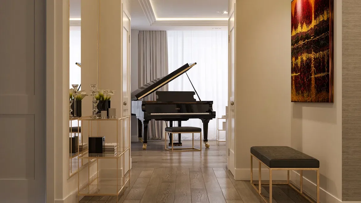 Created a smooth, elegant transition connecting the entry, hallway, and living spaces.