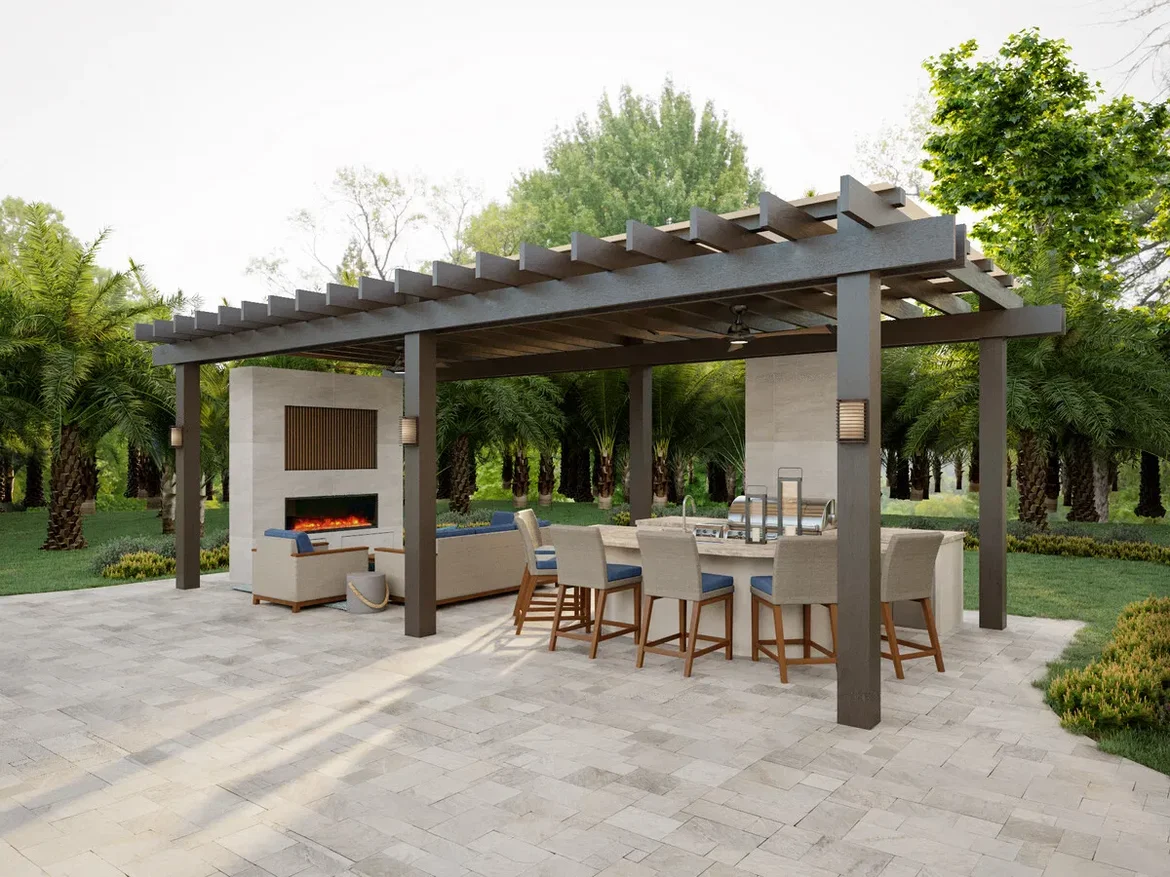 Installed a pergola-style outdoor kitchen with a built-in grill