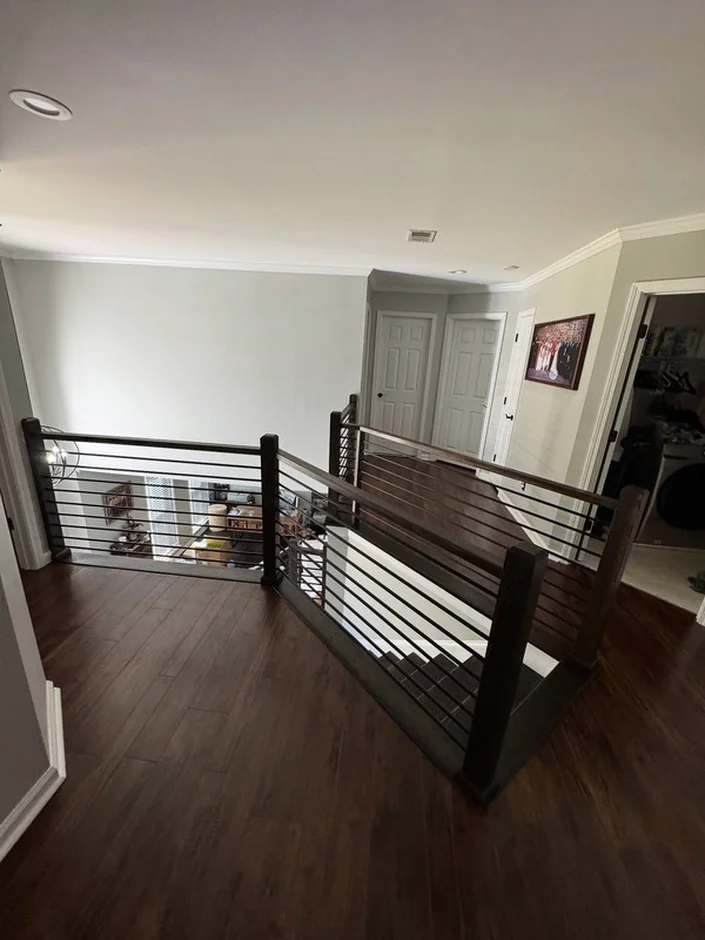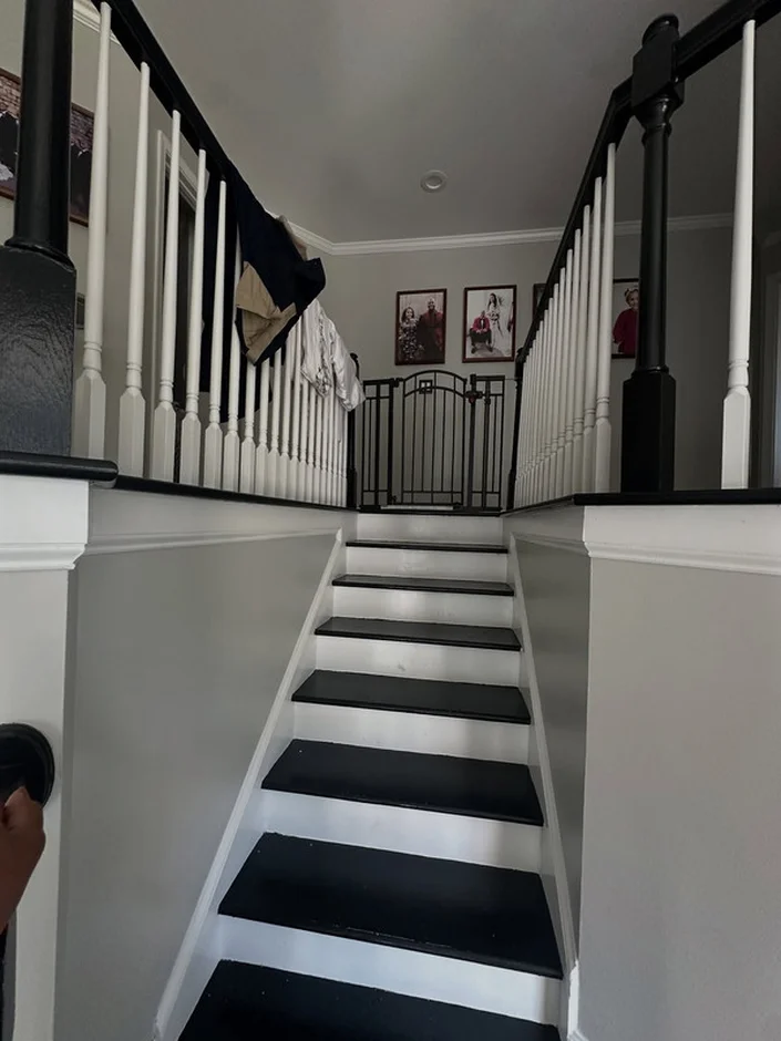 This staircase renovation brought a fresh, modern, and highly architectural look to the home. With rich wood tones, clean white accents, and updated railing elements, the new design enhances both functionality and aesthetic appeal. The space now feels more open, cohesive, and visually striking — perfectly blending traditional structure with contemporary detailing.